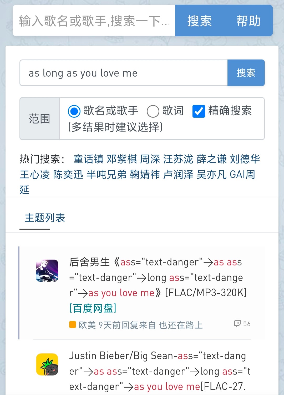 有人注意到吗,用英文歌名搜索,结果显示不准确,如下图。是输入法还是网站的问题啊?