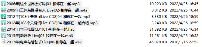 和你在一起,除06年这版,都是live。以后整理好会以专辑上传,这些会删掉腾空间。